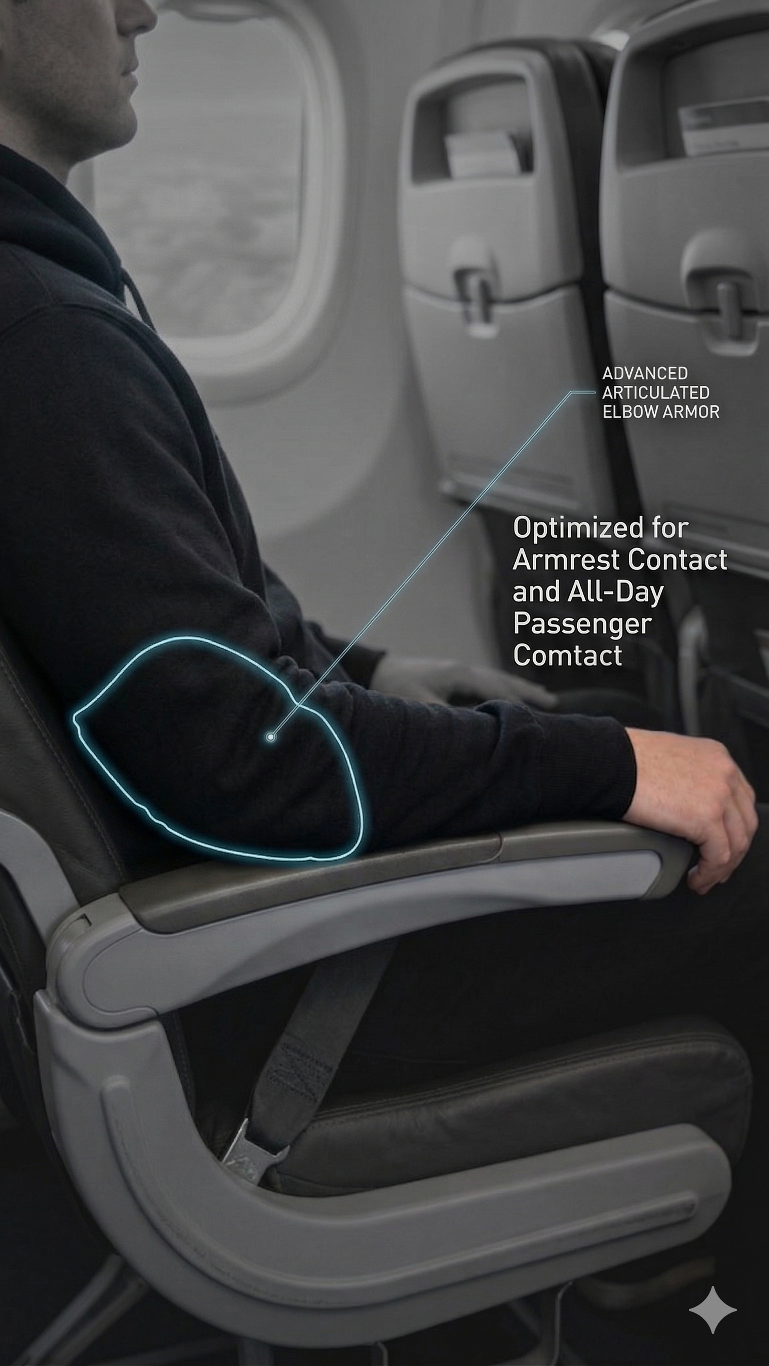 Turn the hardest plastic on the plane into a mattress. Built-in elbow padding specifically neutralizes the pain of narrow economy seating.