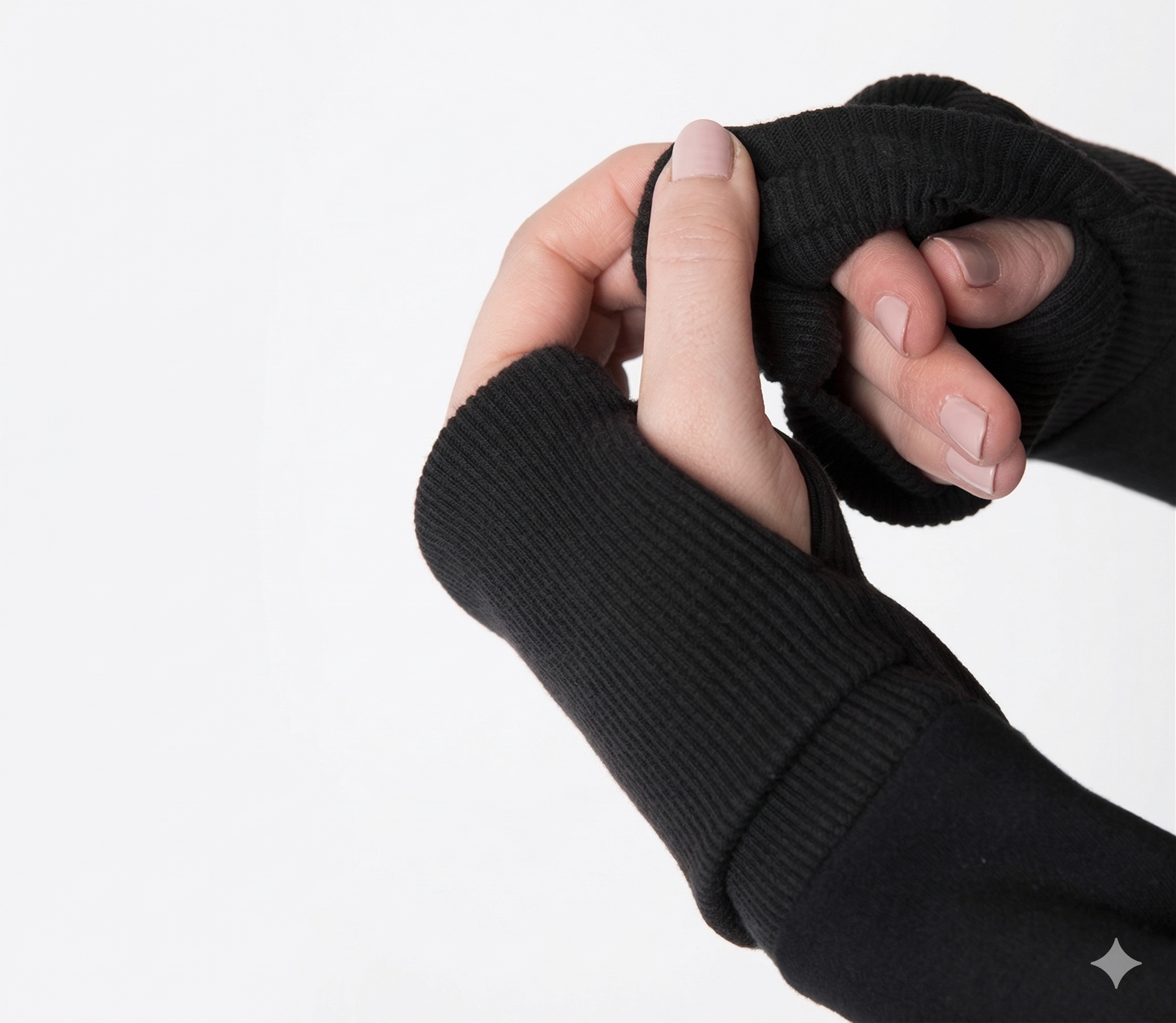 Ribbed convertible half/full hand gloves built into the sleeves seal out freezing cabin air conditioning to regulate your body temperature.